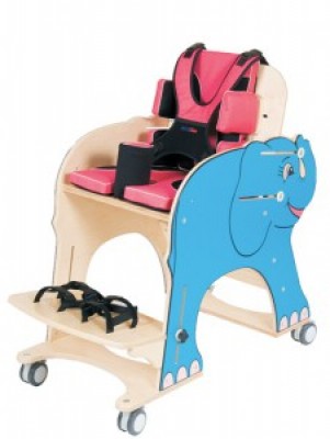 Fotelik rehabilitacyjny Słonik służy do wstępnej pionizacji dzieci w pozycji siedzącej. Prosty w budowie i obsłudze, a zarazem bardzo funkcjonalny, kolorowy. Regulowane peloty boczne pomagają korygować wady postawy. Mimo swojej prostoty w budowie doskonale spełnia swoją funkcję.